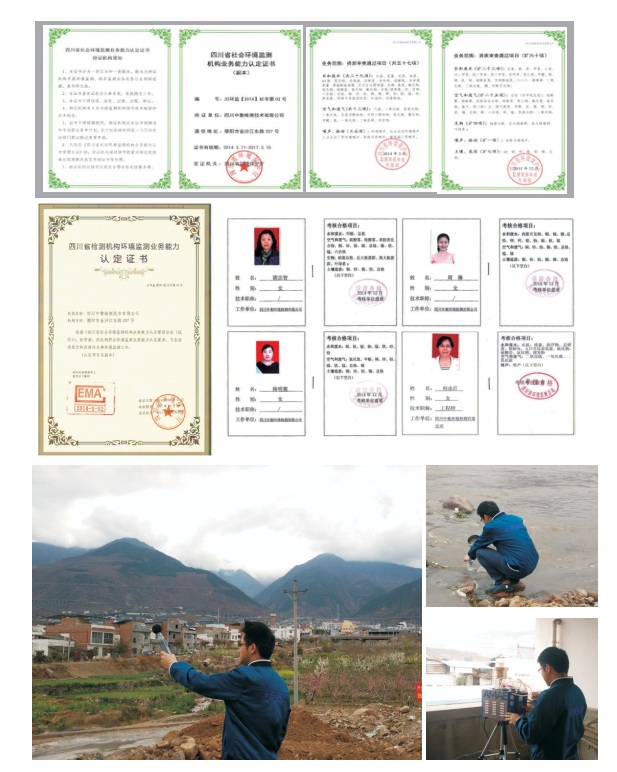 四川中衡檢測技術有限公司與于2014年3月通過了四川省環保廳組織的社會環境檢測機構業務能力認定,核心技術人員均通過了四川省環境監測總站的上崗考核,能夠為社會提供具備公信力的檢測報告。截止2021年6月,我公司已具備檢測環境類1415項的能力。