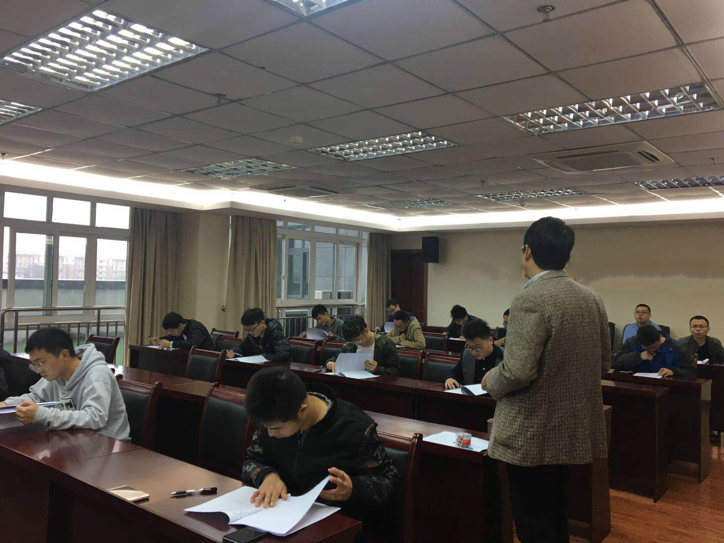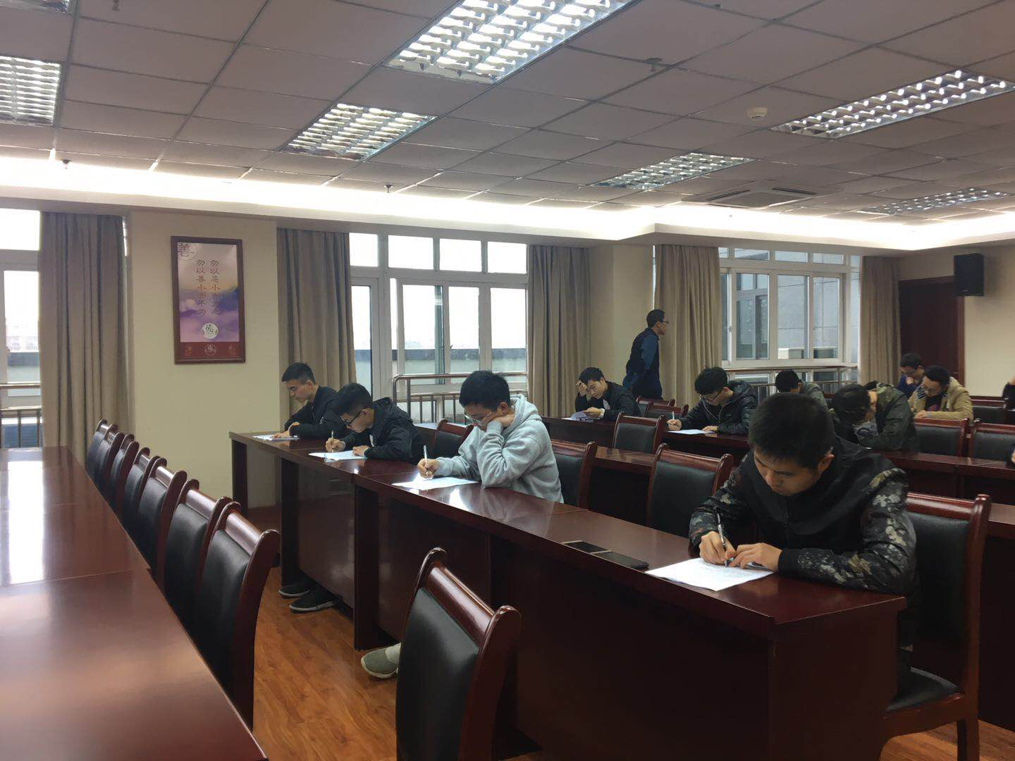 上午是為期2個小時的筆試,由公司職稱評審委員會主持,采樣部部長尹建、成都分公司采樣部部長唐明亮,綿陽分公司采樣部部長劉華強監(jiān)考。9時,來自各個分公司共20位技術(shù)人員準時到達德陽總公司參加考試。考試開始前,公司組織監(jiān)考官向各位考生進行了誠信考試的宣講,督促各位技術(shù)人員考生認真作答,檢測自己的真實水平。考試開始,每位考生認真提筆,嚴謹作答,猶如準備充分的戰(zhàn)士在戰(zhàn)場上大展宏圖。