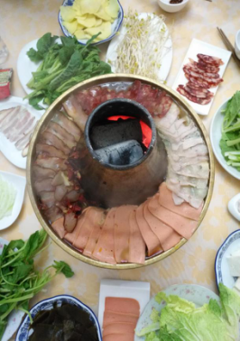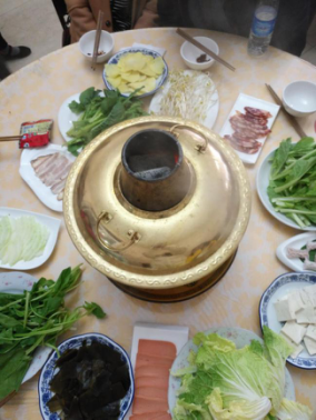 5點下山,回到酒店,開始晚餐:特色臧家火鍋。火鍋的味道還是很不錯的,主題以素菜為主肉食為輔,廚師刀工特別好,肉薄似紗,私人訂制一人一片。