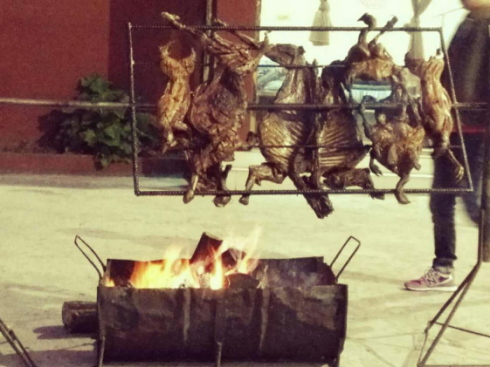 到達山頂,山頂上依舊下著雪,可惜的是沒有堆積的滿地雪讓我們堆雪人打雪仗,驚喜的是居然有露天自助燒烤。