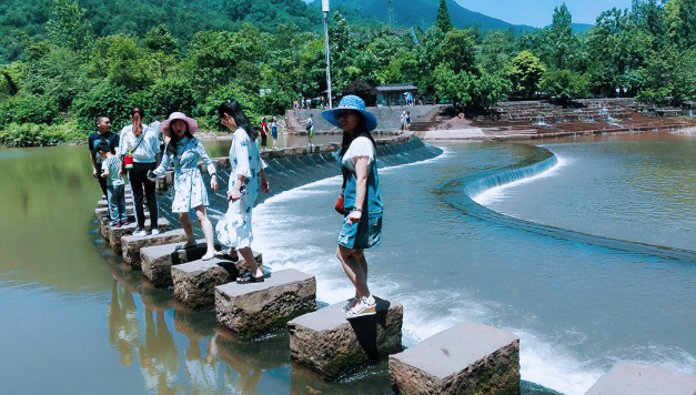 踩著間隙不一的石頭一路前行,溪水從上至下流進河里,瞬間有種脫鞋赤腳玩水的沖動。真是應了那句廣告詞“透心涼,心飛揚啊。”