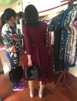 巷子里的一家旗袍店,吸引我們女同事的目光,女孩子的心中大多有個(gè)旗袍夢(mèng),喜歡旗袍的女生大多是婉約中透著詩(shī)意,帶著淺淺心事,就像戴望舒《雨巷》里那位“丁香一樣的姑娘”,現(xiàn)在就差一把油紙傘了。