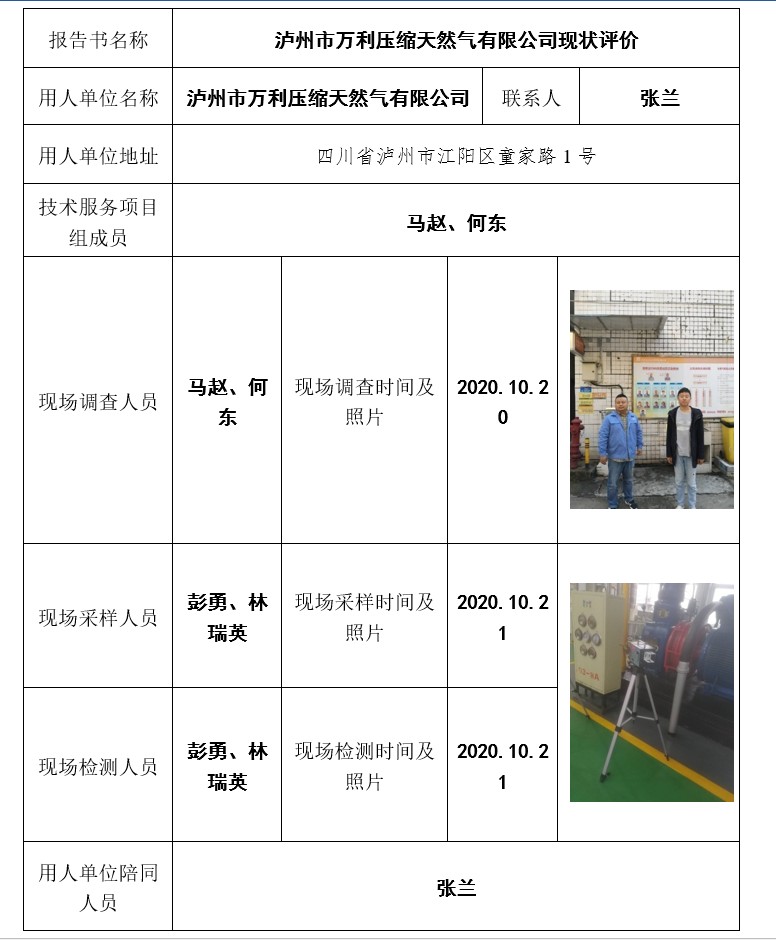 瀘州市萬利壓縮天然氣有限公司現狀評價