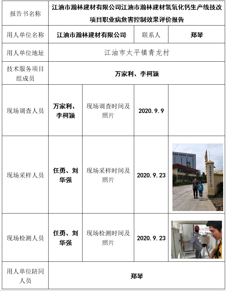 江油市瀚林建材有限公司江油市瀚林建材氫氧化鈣生產線技改項目職業病危害控制效果評價報告