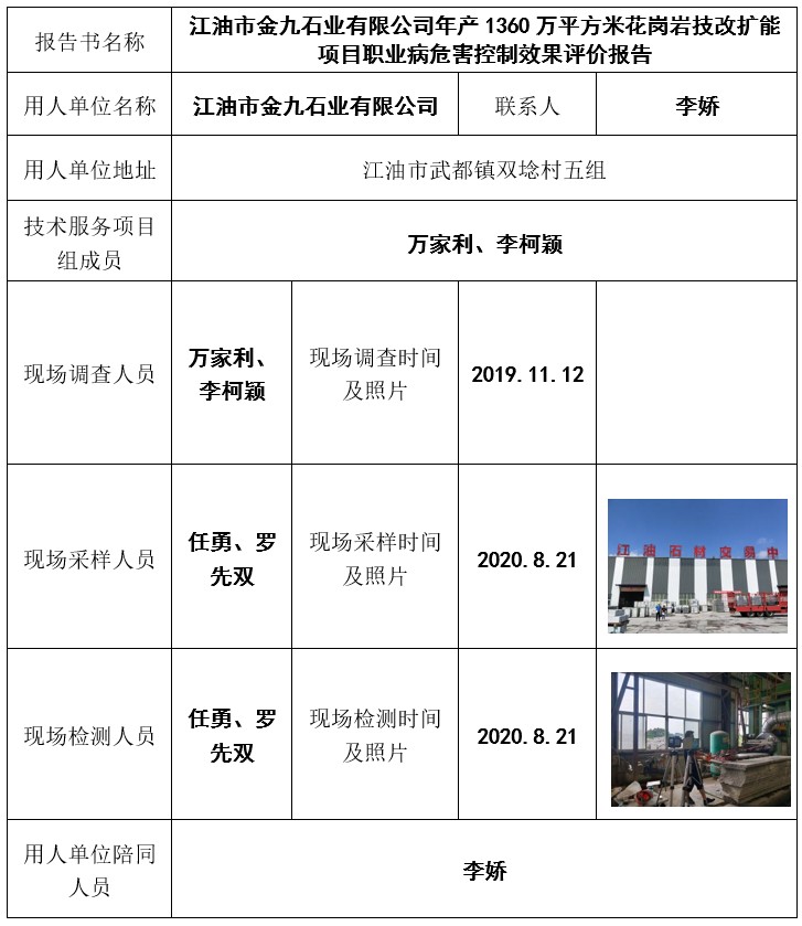江油市金九石業有限公司年產1360萬平方米花崗巖技改擴能項目職業病危害控制效果評價報告