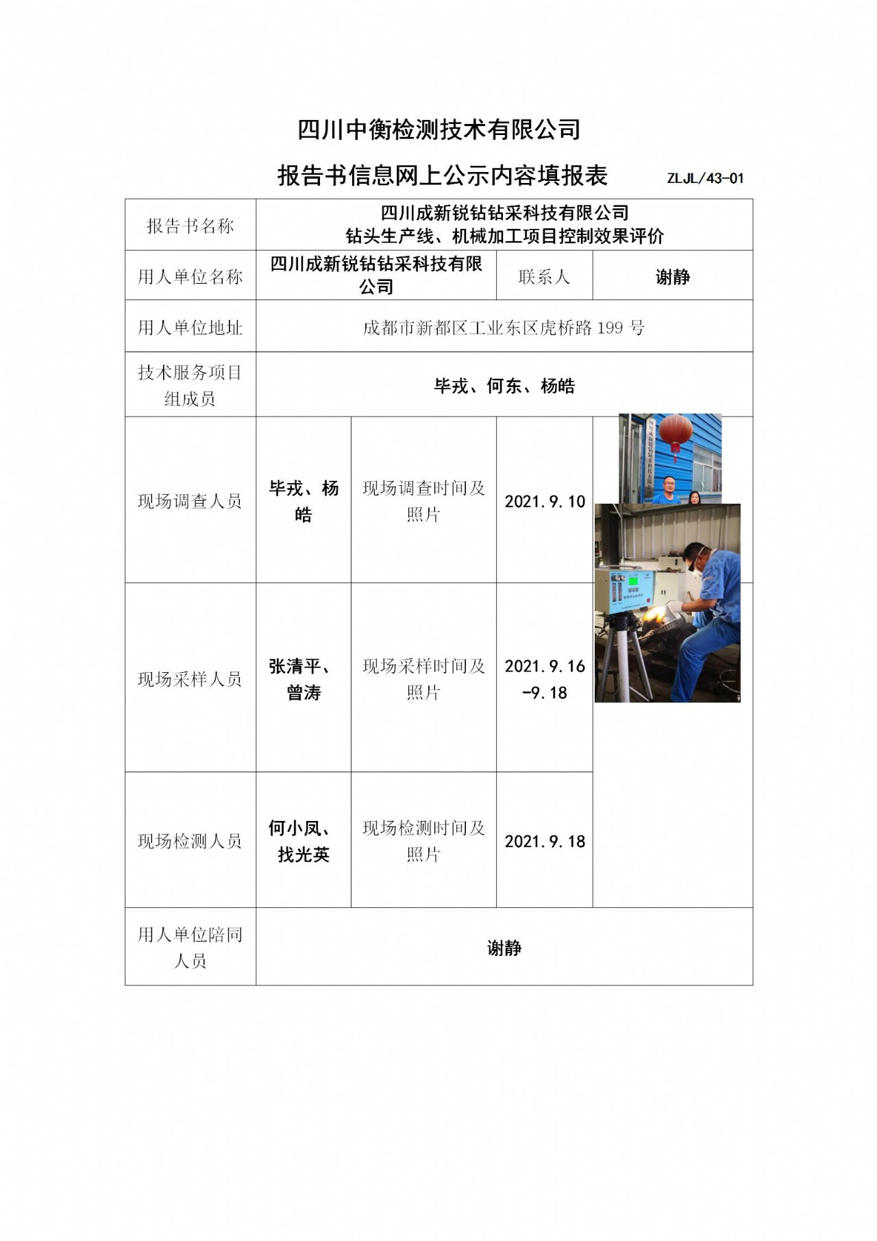 四川成新銳鉆鉆采科技有限公司 鉆頭生產線、機械加工項目控制效果評價