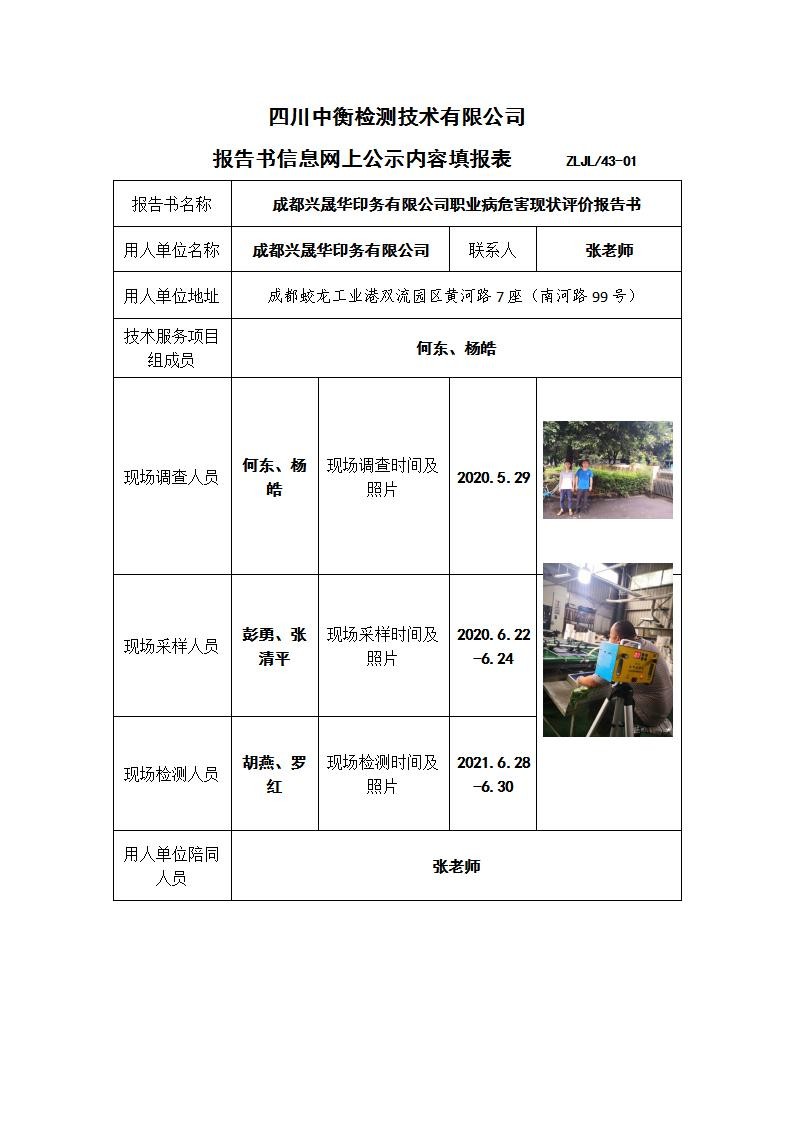 成都興晟華印務有限公司職業(yè)病危害現(xiàn)狀評價報