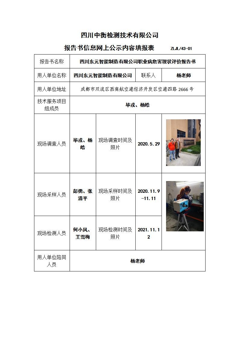 四川東元智能制造有限公司職業(yè)病危害現(xiàn)狀評(píng)價(jià)報(bào)告書