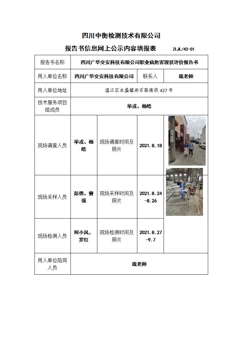 四川廣華交安科技有限公司職業病危害現狀評價報告書