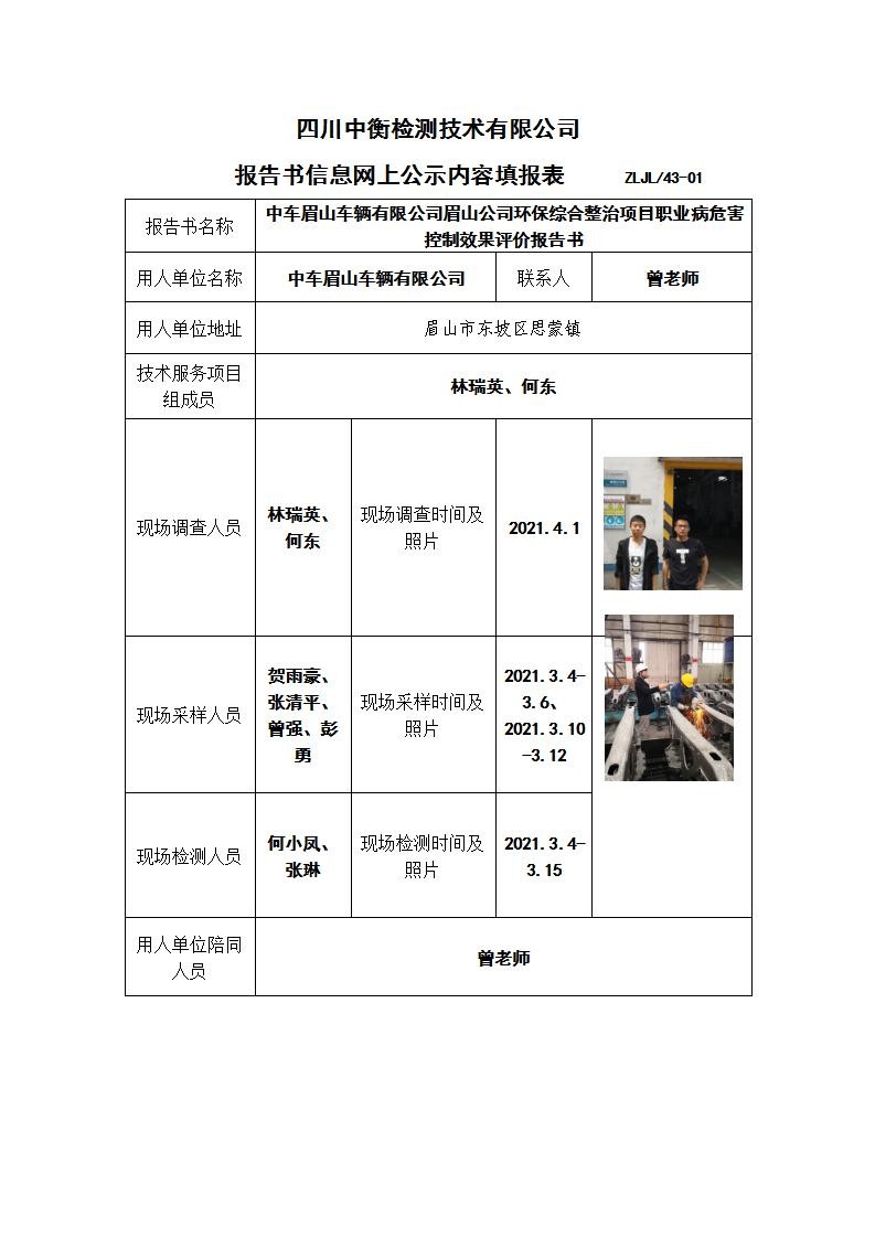 中車眉山車輛有限公司眉山公司環保綜合整治項目職業病危害控制效果評價報告書