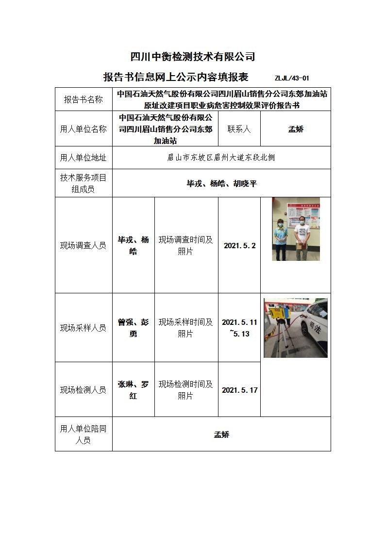 中國石油天然氣股份有限公司四川眉山銷售分公司東郊加油站原址改建項目職業病危害控制效果評價