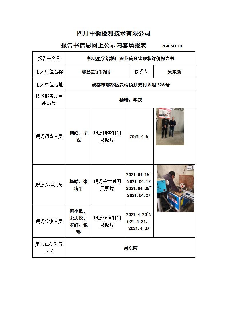 郫縣星宇鋁箱廠職業病危害現狀評價