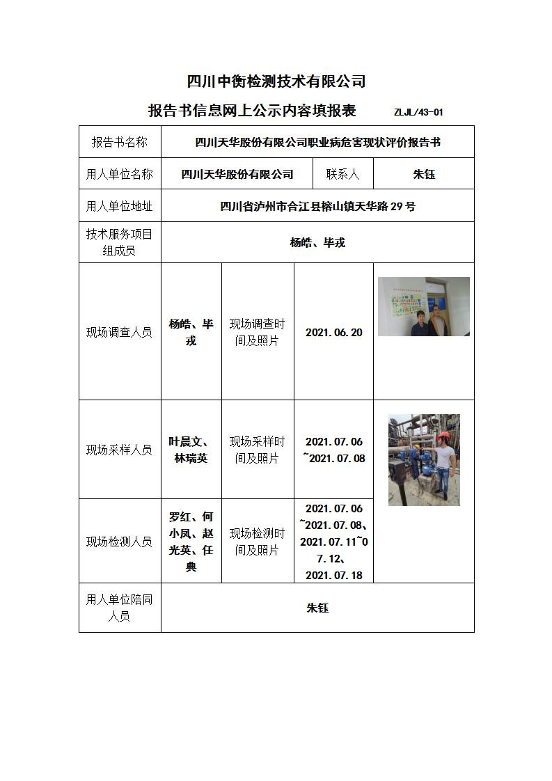 四川天華股份有限公司職業(yè)病危害現(xiàn)狀評(píng)價(jià)