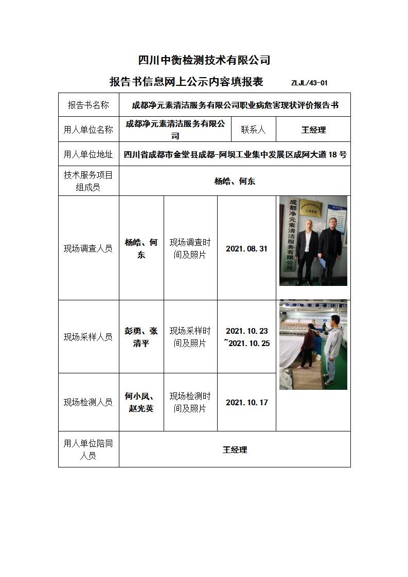 成都凈元素清潔服務有限公司職業病危害現狀評價