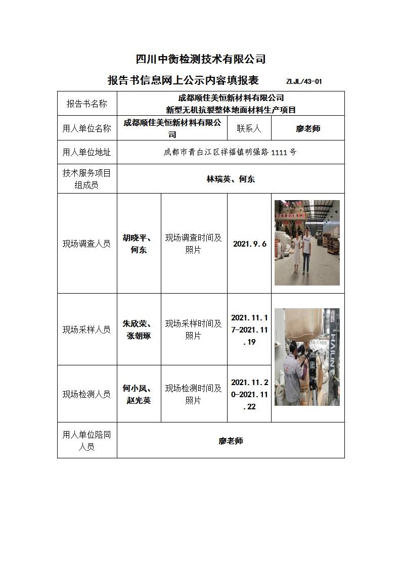 成都順佳美恒新材料有限公司 新型無機(jī)抗裂整體地面材料生產(chǎn)項目