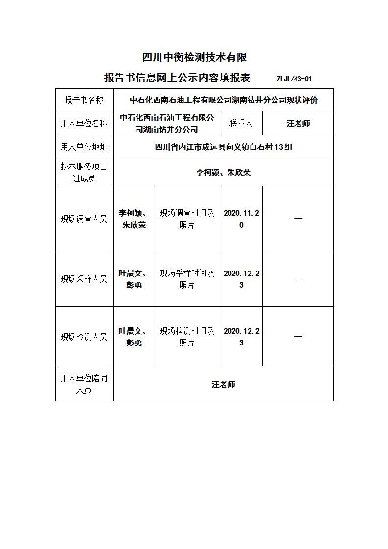 中石化西南石油工程有限公司湖南鉆井分公司現(xiàn)狀評價