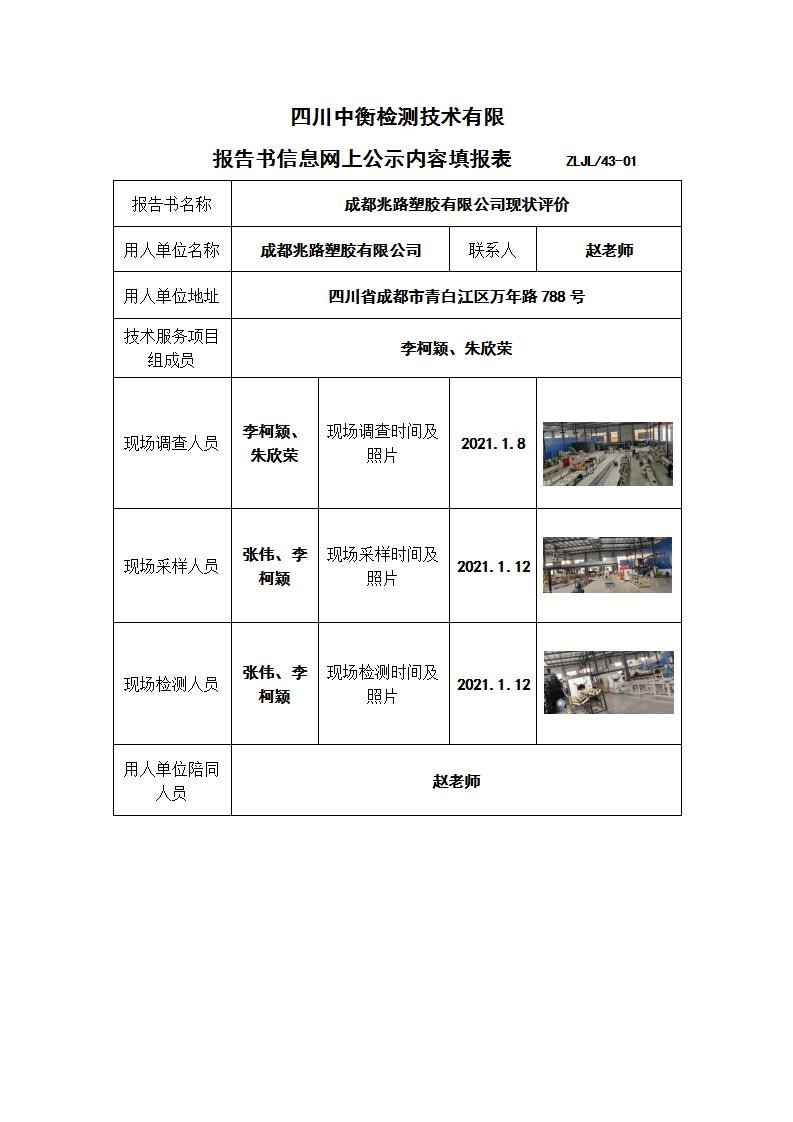 成都兆路塑膠有限公司現(xiàn)狀評價