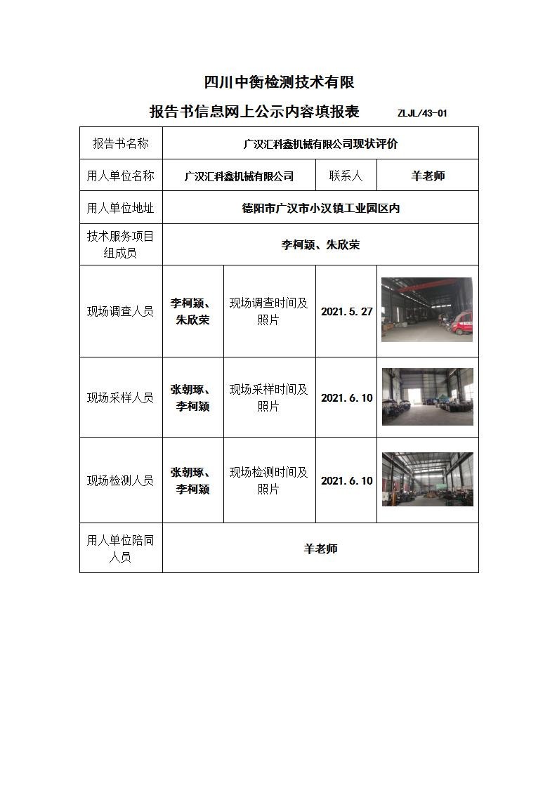廣漢匯科鑫機械有限公司現(xiàn)狀評價
