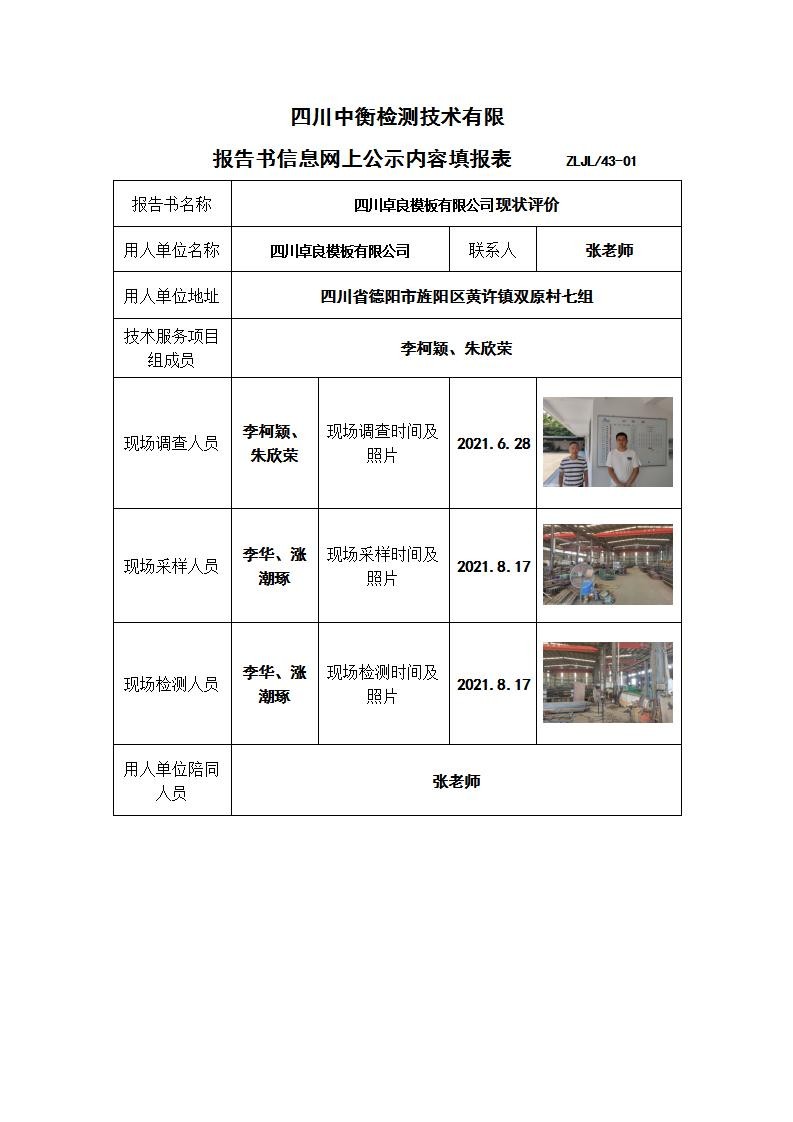 四川卓良模板有限公司現(xiàn)狀評(píng)價(jià)