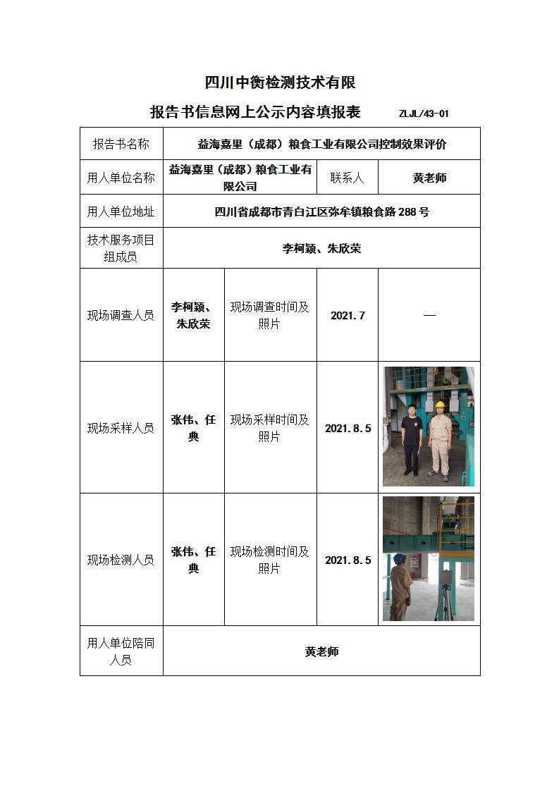 益海嘉里(成都)糧食工業(yè)有限公司控制效果評價