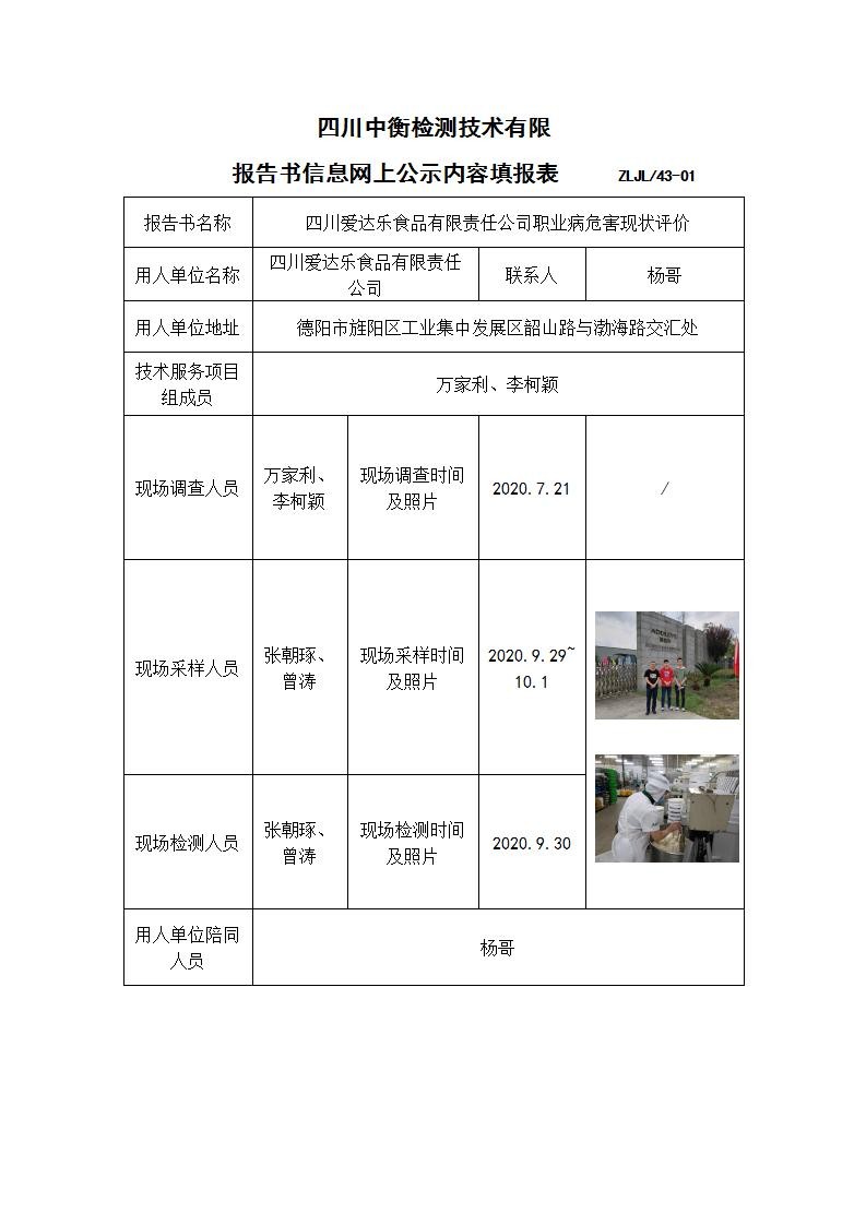 四川愛達樂食品有限責任公司職業(yè)病危害現(xiàn)狀評價