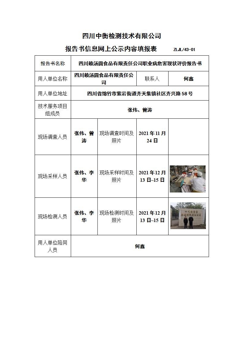 四川賴湯圓食品有限責任公司職業病危害現狀評價