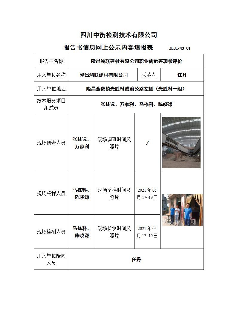 隆昌鴻聯建材有限公司職業病危害現狀評價