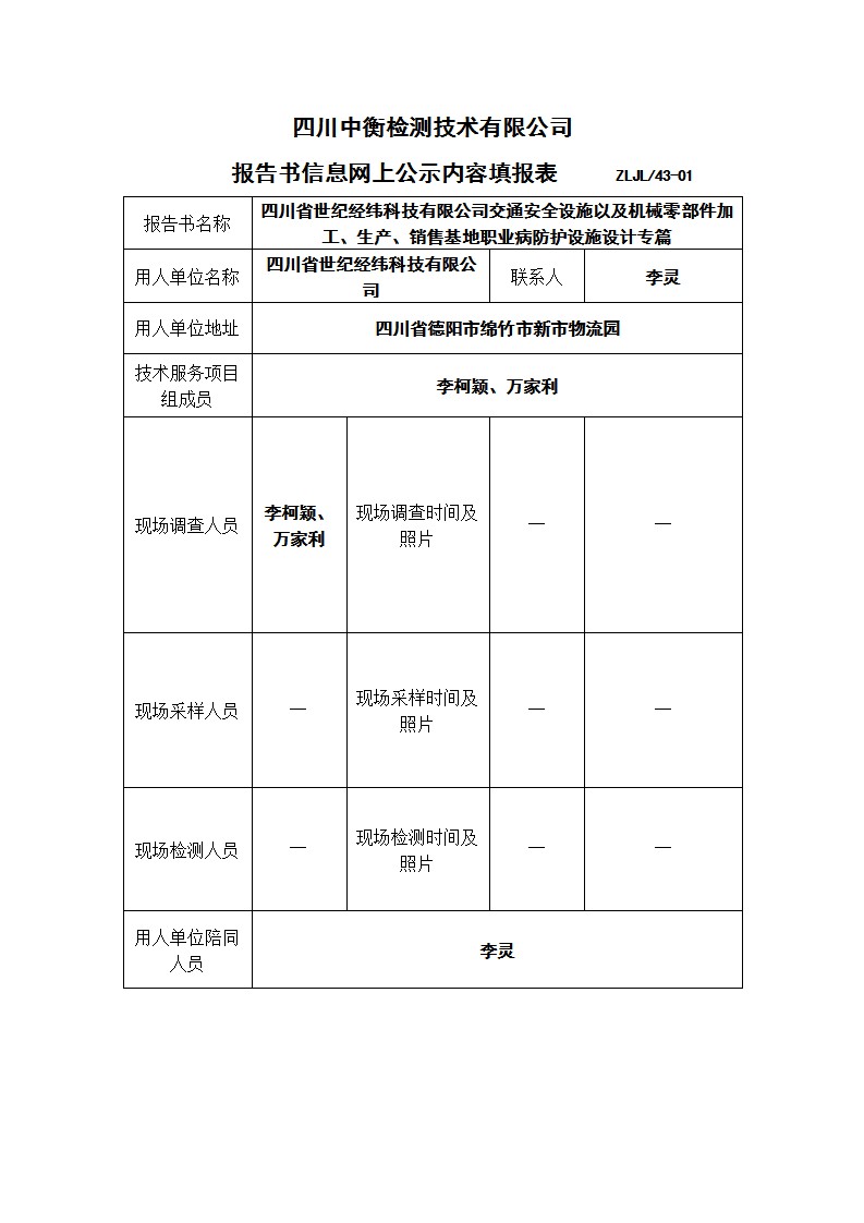 四川省世紀經緯科技有限公司交通安全設施以及機械零部件加工、生產、銷售基地職業病防護設施設計專篇