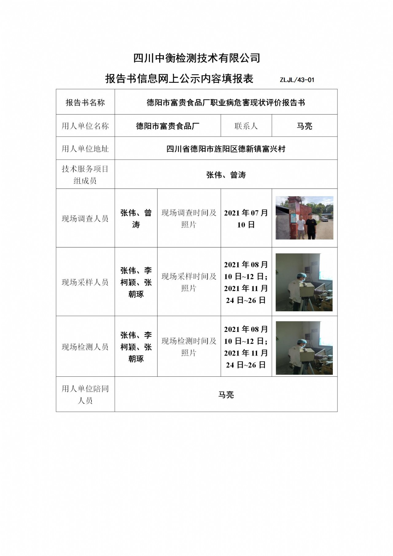 德陽市富貴食品廠職業(yè)病危害現(xiàn)狀評價報告