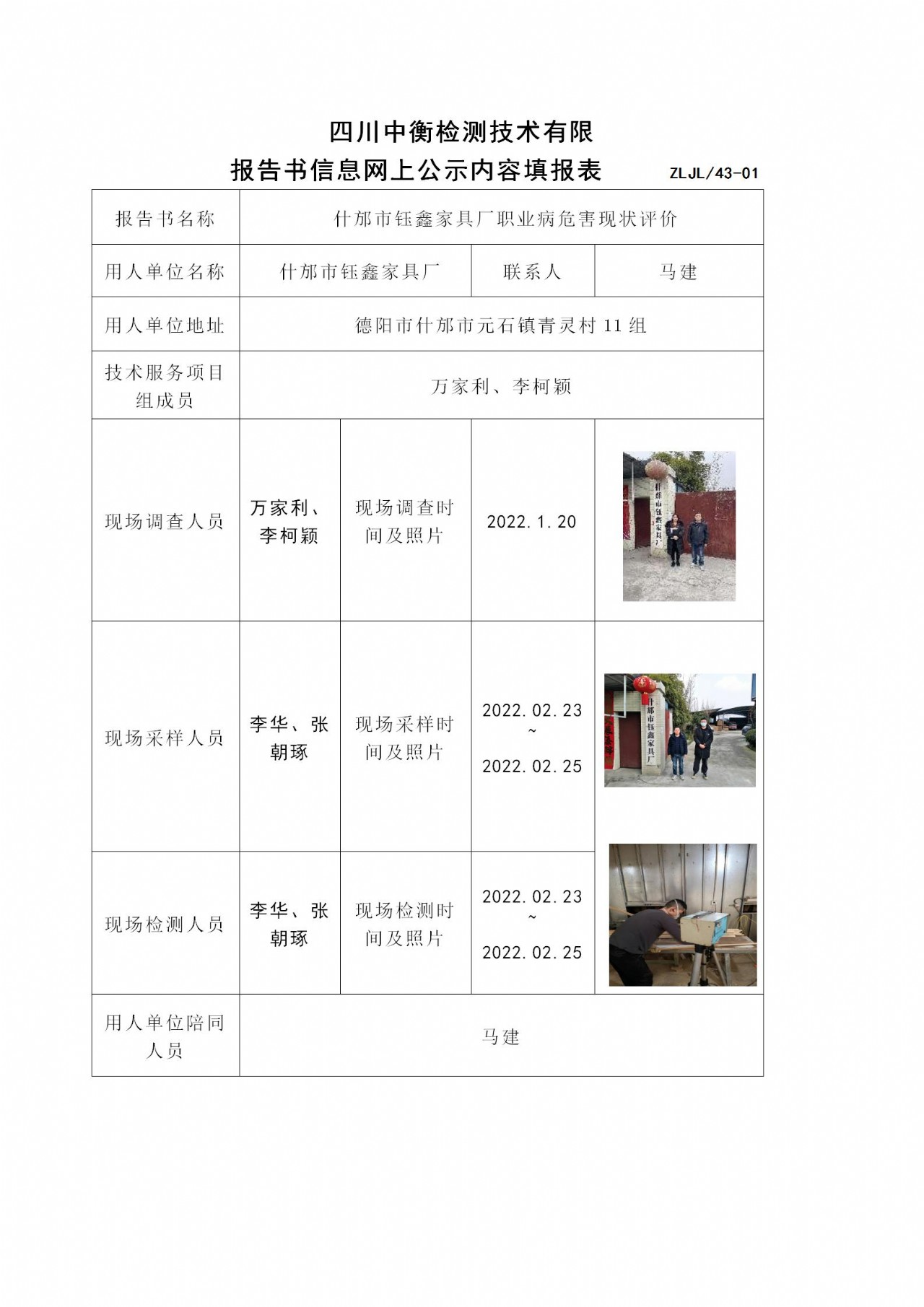什邡市鈺鑫家具廠職業病危害現狀評價
