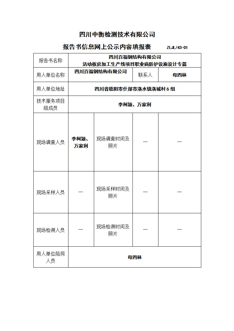 四川百福鋼結(jié)構(gòu)有限公司 活動板房加工生產(chǎn)線項目職業(yè)病防護設(shè)施設(shè)計專篇