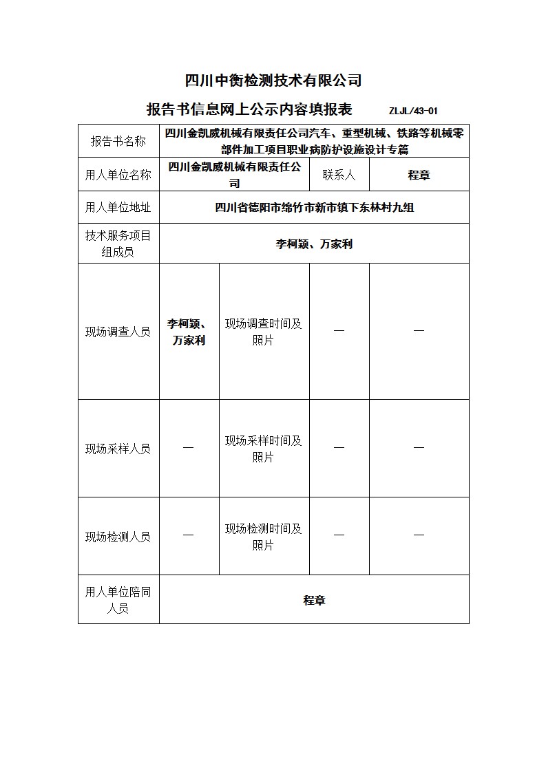 四川金凱威機(jī)械有限責(zé)任公司汽車、重型機(jī)械、鐵路等機(jī)械零部件加工項(xiàng)目職業(yè)病防護(hù)設(shè)施設(shè)計(jì)專篇