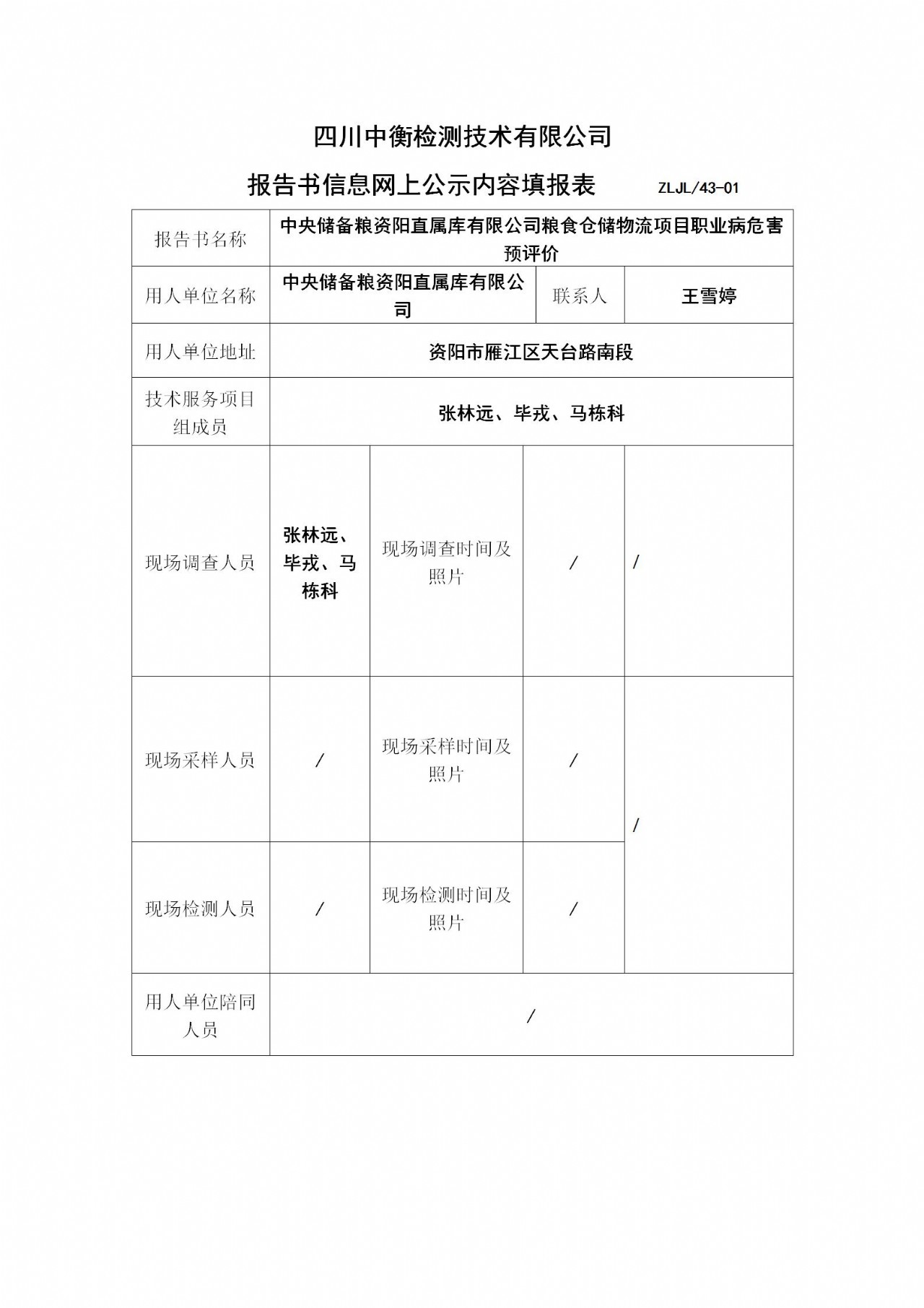 中央儲備糧資陽直屬庫有限公司糧食倉儲物流項目職業病危害預評價