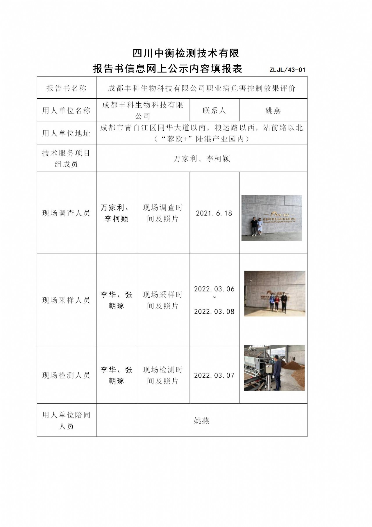 成都豐科生物科技有限公司職業(yè)病危害控制效果評價