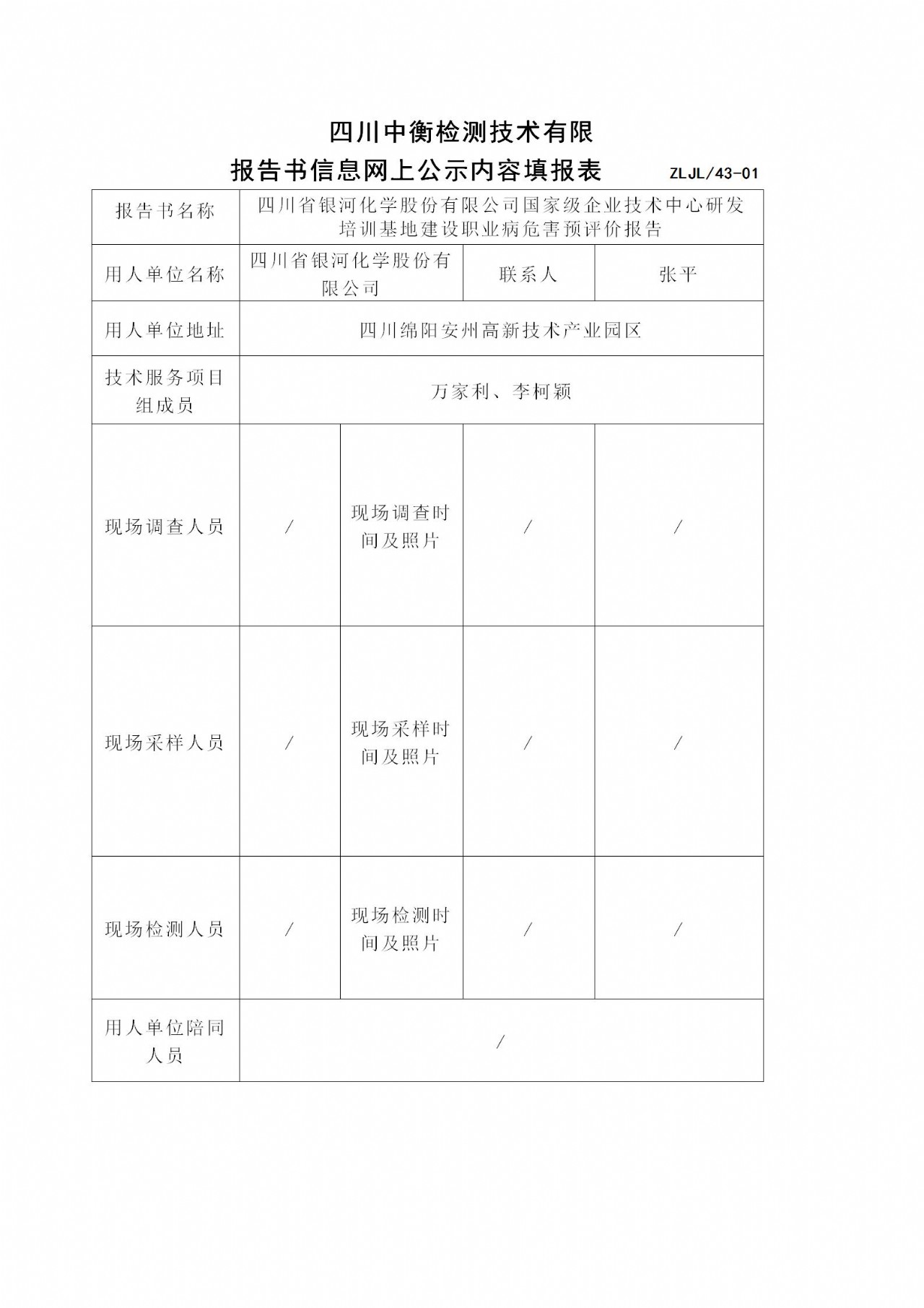 四川省銀河化學股份有限公司國家級企業技術中心研發培訓基地建設職業病危害預評價報告
