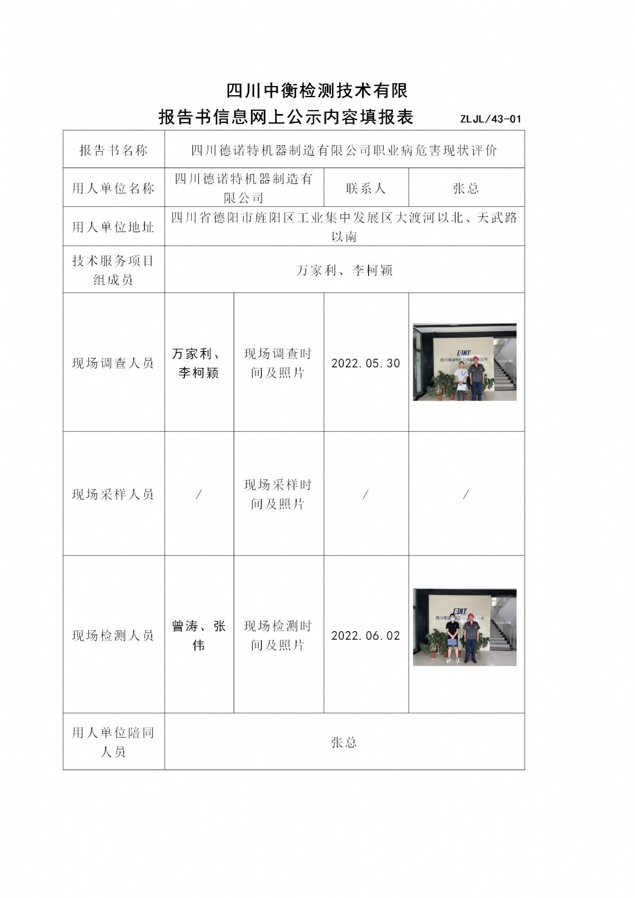 四川德諾特機器制造有限公司職業病危害現狀評價