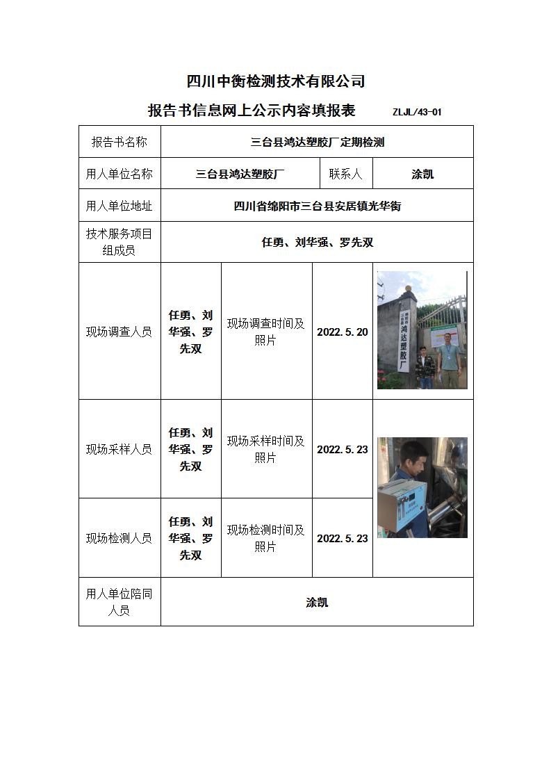 三臺縣鴻達塑膠廠職業病危害定期檢測