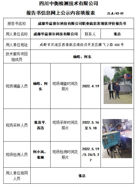 成都華益賽爾科技有限公司職業(yè)病危害現(xiàn)狀評(píng)價(jià)