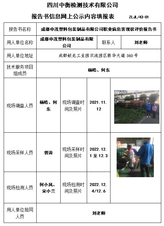 成都申茂塑料包裝制品有限公司職業病危害現狀評價