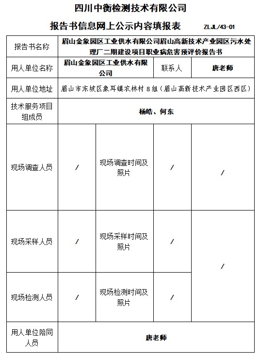 眉山金象園區工業供水有限公司眉山高新技術產業園區污水處理廠二期建設項目職業病危害預評價