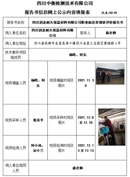 四川潤龍耐火保溫材料有限公司職業病危害現狀評價