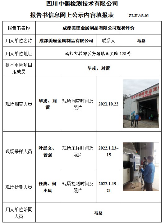 成都美瑾金屬制品有限公司現(xiàn)狀評價(jià)