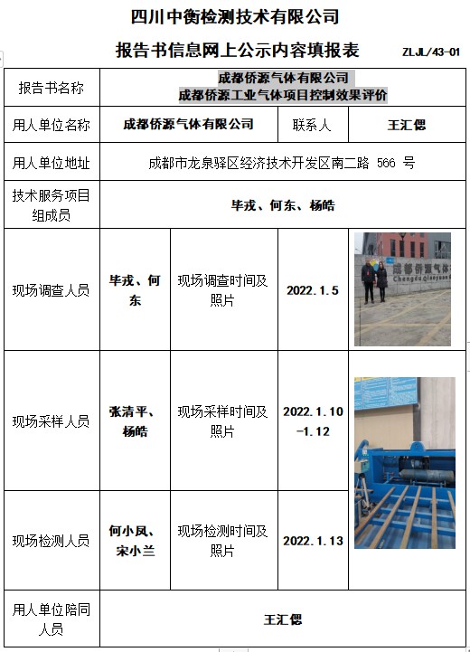 成都僑源氣體有限公司 成都僑源工業氣體項目控制效果評價