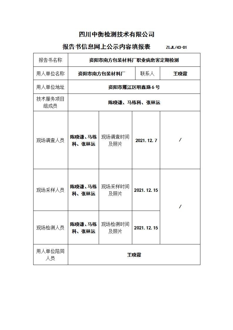 資陽市南方包裝材料廠職業(yè)病危害定期檢測(cè)