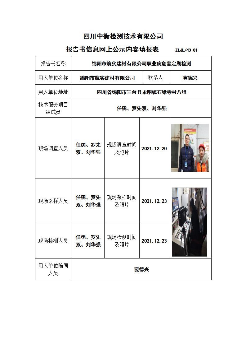 綿陽市航實建材有限公司職業病危害定期檢測