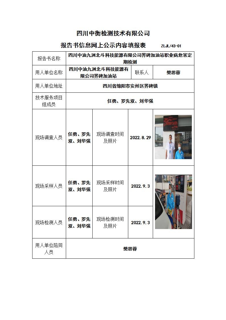 四川中油九洲北斗科技能源有限公司界碑加油站職業(yè)病危害定期檢測(cè)