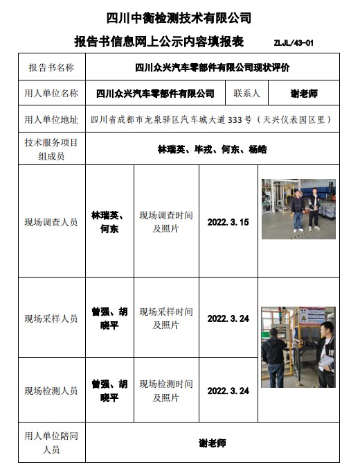 四川眾興汽車零部件有限公司現(xiàn)狀評(píng)價(jià)