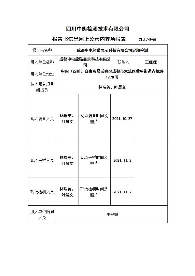 成都中電熊貓顯示科技有限公司職業病危害定期檢測