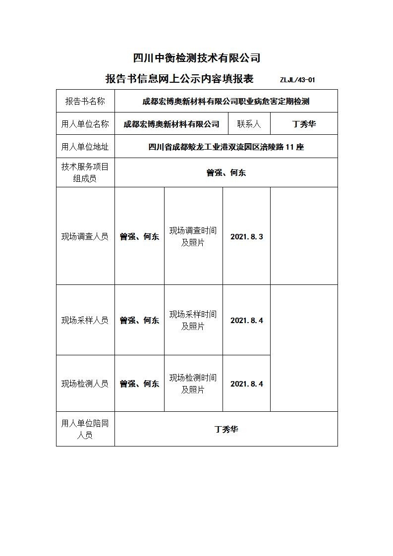 成都宏博奧新材料有限公司職業(yè)病危害定期檢測
