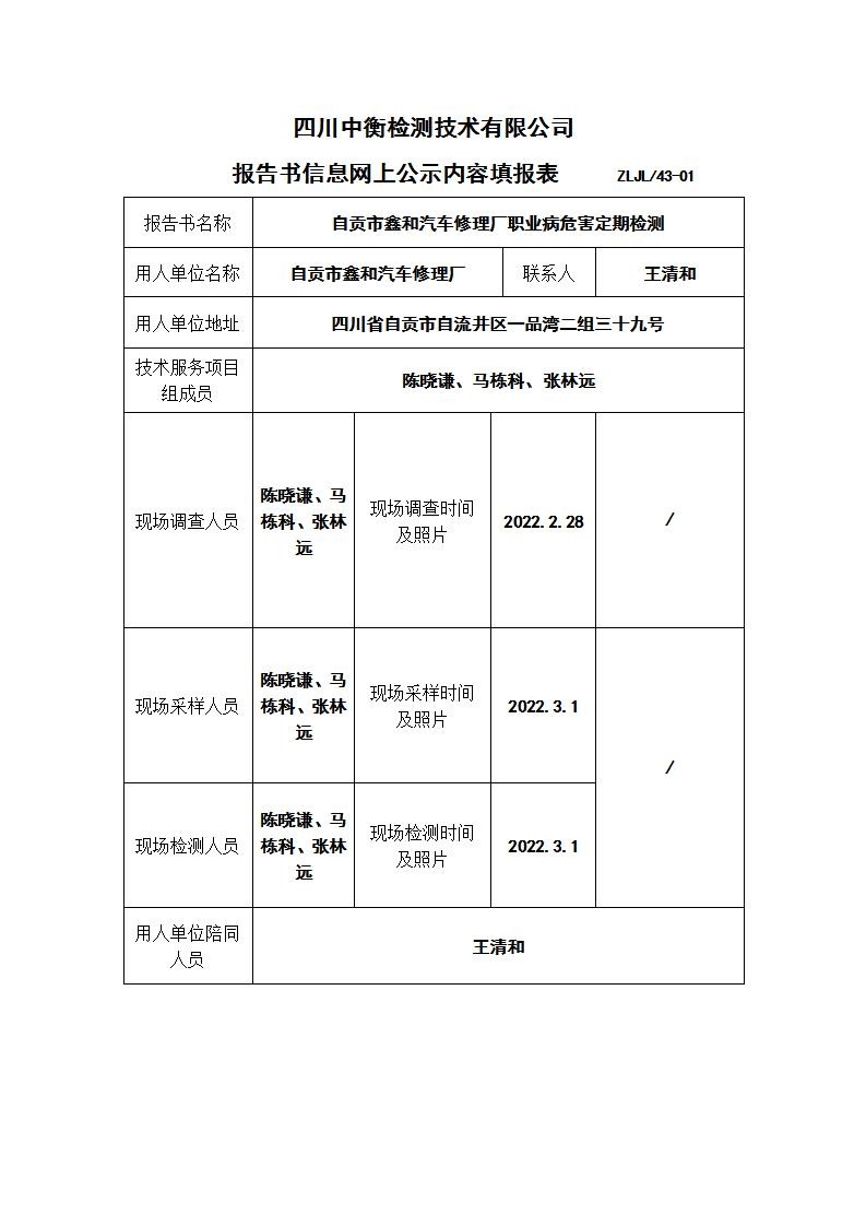自貢市鑫和汽車修理廠職業病危害定期檢測